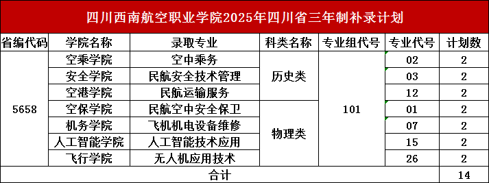 ????根据四川省教育考试院录取工作安排,专科层次补录时间为9月25日—26日。四川西南航空职业学院尚有补录名额,心仪西航的你赶快抓住最后机会,开启逐梦西航的青春新章……