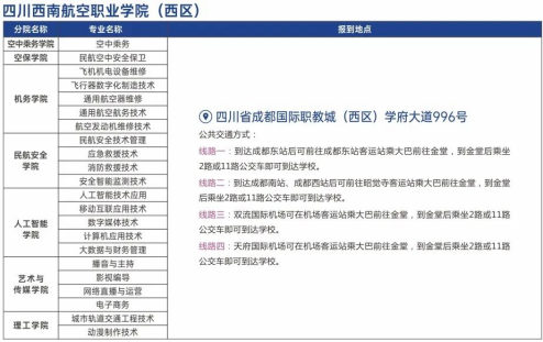 信息关注:请及时关注学校官方网站、微信公众号(四川西南航空职业学院)、官方微博等平台,获取最新报到及入学安排,切勿轻信其它渠道信息。