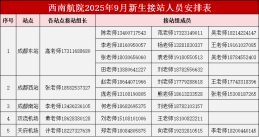 9月2日-3日7:00-19:00,在成都东站、成都西站、成都南站、双流机场、天府机场均安排排咨询接待点及接送车辆,接待老师均佩有院校工牌,现场设有学校指示牌,请仔细识别,谨防受骗。(接站咨询电话:400-867-9992)